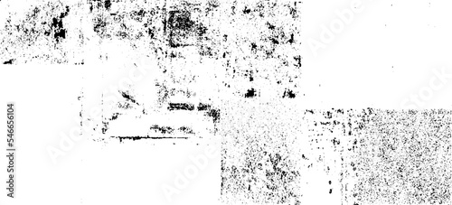 Monochrome texture composed of irregular graphic elements. Distressed uneven grunge background. Abstract vector illustration. Overlay for interesting effect and depth. Isolated on white background.