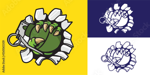 monster claw break wall and holding grenade good for logo, sticker, badge, decal, etc