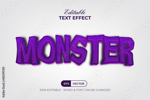 Monster Text Effect Purple 3D Style. Editable Text Effect.