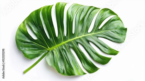 Monstera leaf laying flat on white background in studio