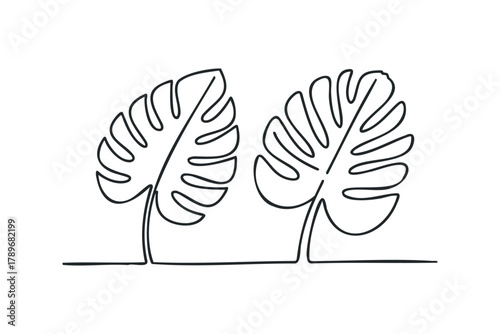 Monstera leaf pair in continuous line drawing style