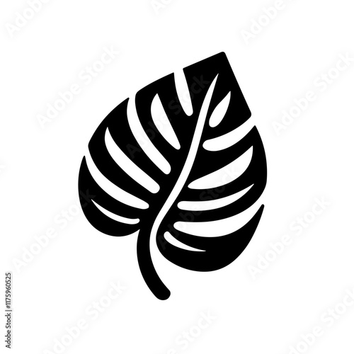 Monstera leaf silhouette on white background