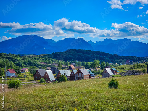 Montenegro landscape with Durmitor mountain and the small mountain town of Zabljak