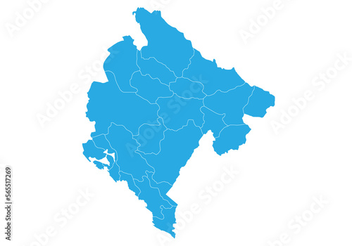 montenegro map. High detailed blue map of montenegro on PNG transparent background.