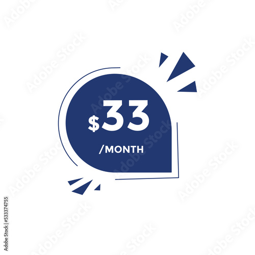 Monthly 33 Dollar price tag or sticker. thirty three dollars sales tag. shopping promotion marketing concept. sale promotion Price Sticker Design