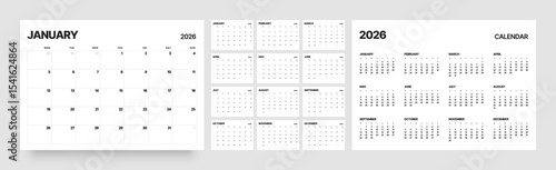 Monthly calendar layout for 2026 year. Diary planner for 2026 year. Week Starts on Monday.