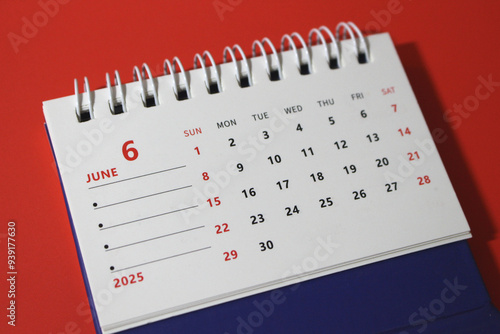 Monthly calendar template for the new year 2025 desk calendar,on red background.