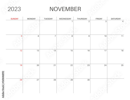 Monthly planner. Horizontal monthly calendar. Simple, minimalist design.