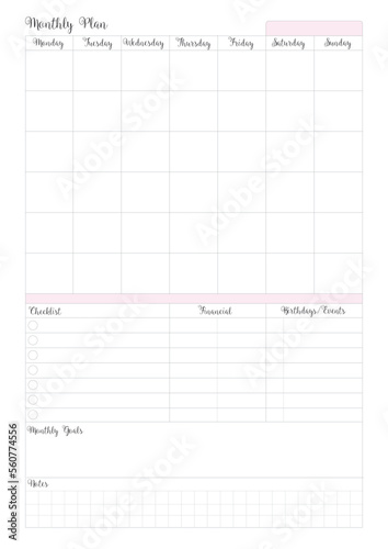 Monthly Planner, Monthly Planner Calendar, KDP Interior, To Do Planner, Vector PDF, Blank Calendar