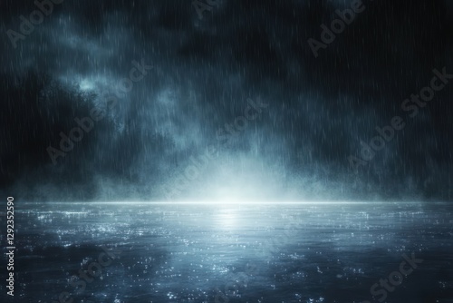 Moody Dark Abstract Landscape Rain Soaked Surface Reflecting Soft Blue Light