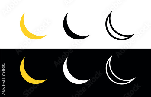 Moon icons set. Crescent silhouette, symbol of night and religion of Islam. Mosque or Muslim sign.