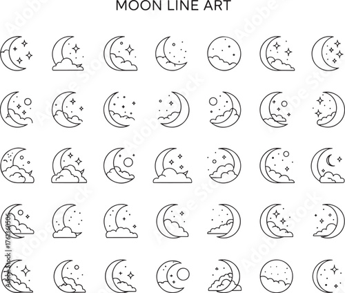 Moon Line Art – Minimalist Lunar Vector Illustration on White Background