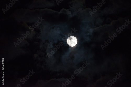 Moon through the clouds at night, super moon