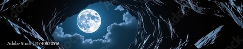 Moonlight spills into a dark cavern mouth, revealing jagged rocks and shadowed depths hinting at untold secrets within, opening, landscape