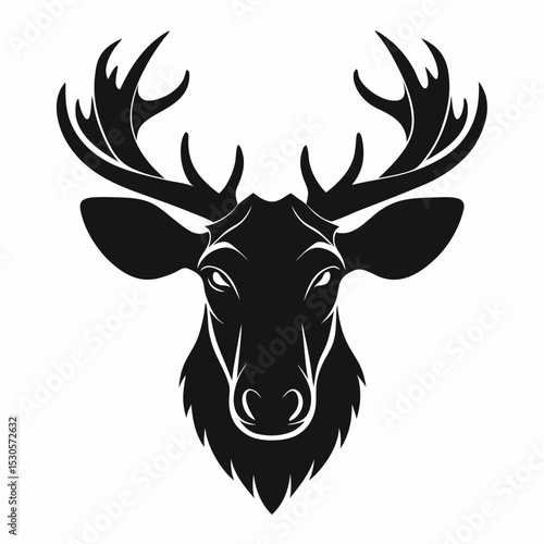 Moose Head Silhouette Design for Wildlife Hunting or Nature Themes Perfect for Logos Banners or Decorative Elements on a White