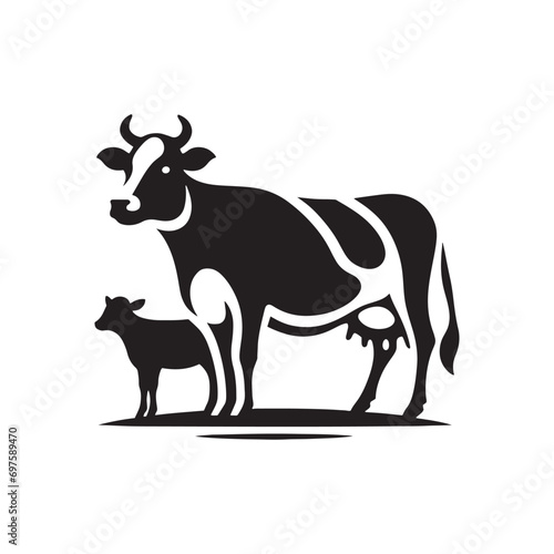 Morning Cow Silhouette Harmony: Sunrise Meadows, Grazing Livestock, and Silhouetted Agricultural Tranquility
