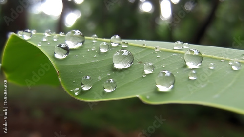 Morning Dew on Large Tropical Leaf: Botanical Macro Art