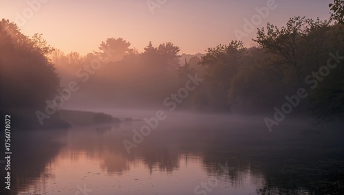 Morning fog rises over an enchanted river.