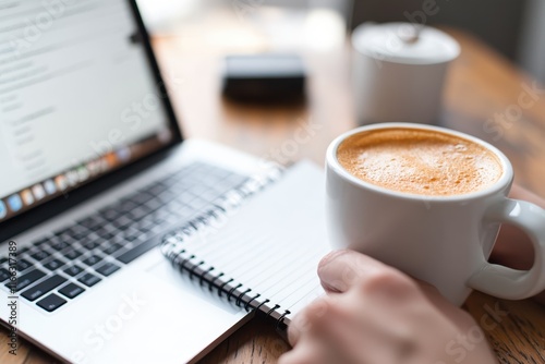 Morning routine blends productivity and warmth with coffee and creativity in a serene workspace