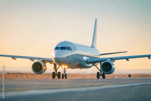 Morning Runway: Passenger Plane Taxiing, Clear Skies