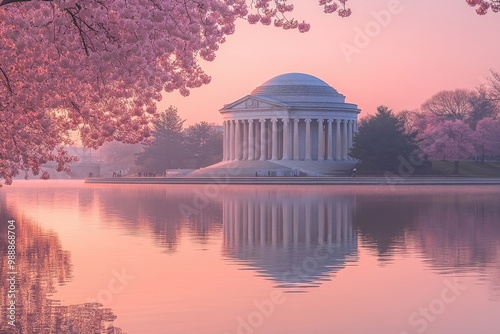 Morning Serenity: Thomas Jefferson Memorial Bathed in Cherry Blossom Sunshine in Washington DC