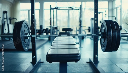 Morning Sunlight Streams Into an Empty Gym Highlighting Workout Equipment. Generative AI