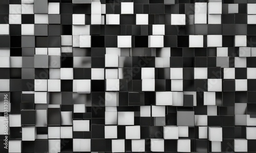 Mosaic of black and white squares and circles, minimalism, patterned, art deco, geometric shapes, classic