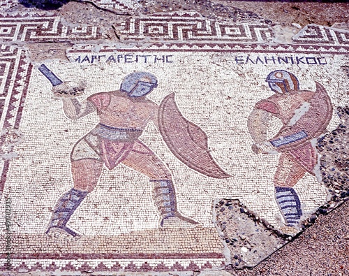 Mosaic of Gladiators in the house of the Gladiators, Kourion, Cyprus.