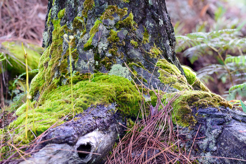 Moss cover on old stump in forest.