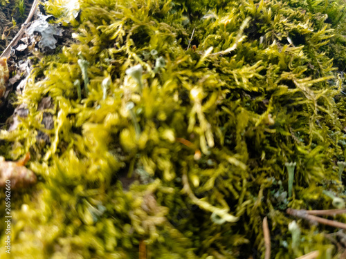 Moss on the bark of a tree. Moss grows on a pine tree.