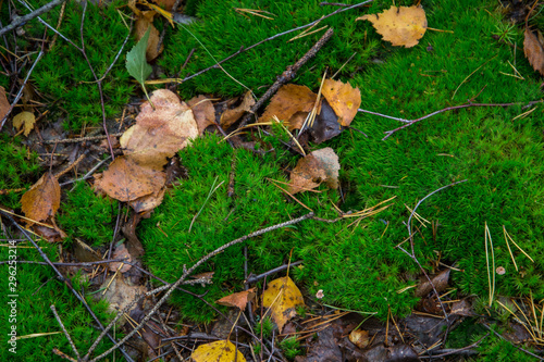 Moss with autumn leaves in Adrspach-Teplice Rocks (Czech Republic)