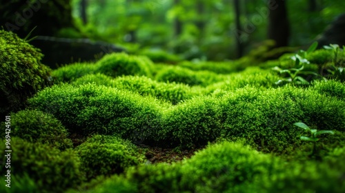 Moss-covered soil features a lush green layer that adds texture and depth. The vibrant moss contrasts with the earthy ground creating a rich natural look perfect for forest or nature-themed imagery