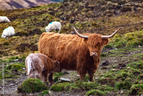 Mother and Baby Highland Cows
