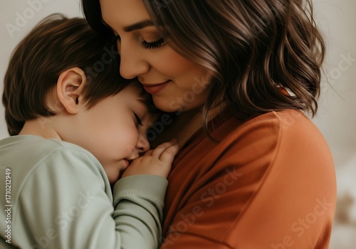 Mother and Child Embrace Affectionately.