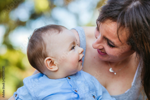 mother and son playing happy