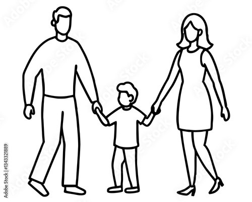 Mother and son,father and son, man and woman, coloring page for kids, family doodle