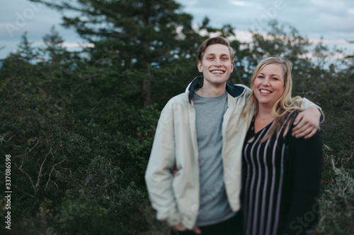 Mother and teenage son outside together
