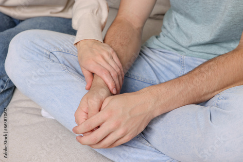 Mother consoling her son, closeup. Teenager problems