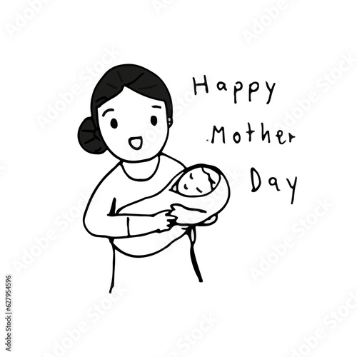 mother hold baby, line icon style vector