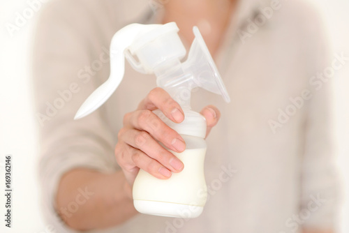 Mother holds breast pump in her hand