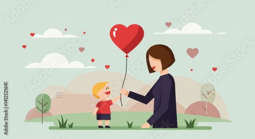 Mother Receiving Heart-Shaped Balloon from Child