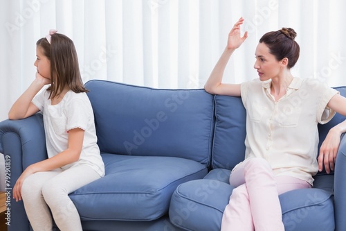Mother scolding her naughty daughter