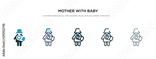 mother with baby in arms icon in different style vector illustration. two colored and black mother with baby in arms vector icons designed filled, outline, line and stroke style can be used for web,