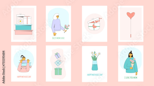 Mother's day greeting card backgrounds set. Spring happy holiday banner template. Festive covers.