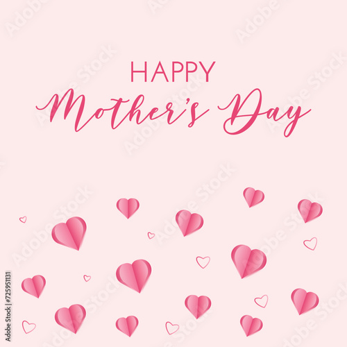 Mother's day greeting card. Pink paper hearts. Vector festive mom postcard, banner, cover, social media