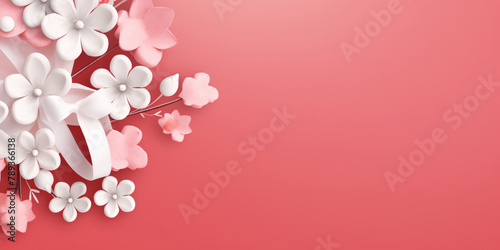 Mother's Day Valentine's Day White flowers Red gift box red background