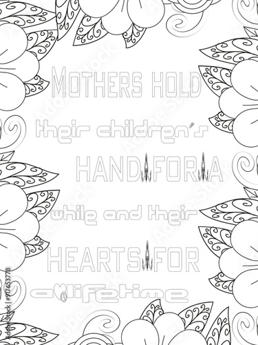 Mothers-Day Quotes Flower Coloring Page Beautiful black and white illustration for adult coloring book