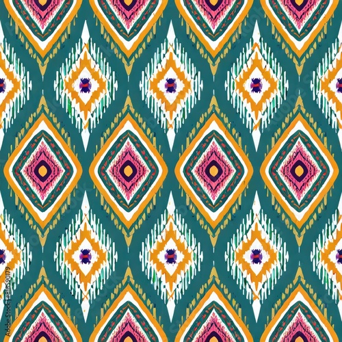 Motif ethnic handmade beautiful Ikat art. Ethnic abstract floral pink background art. folk embroidery