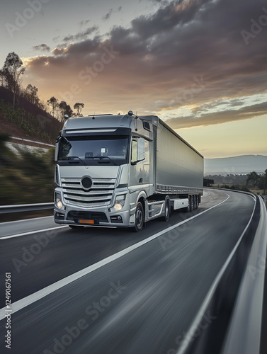 Motion Blur Shot of a Truck Speeding on Highway with Scenic Background