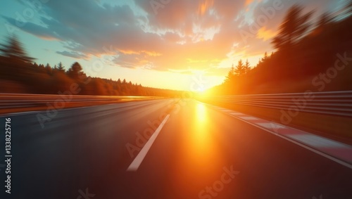 Motion blurred racetrack at sunrise.